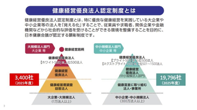 アクサ生命保険 藤井(以下 藤井):アクサ生命保険では、健康経営という言葉が使われるようになった当初からその重要性に着目し、お客さまとともに研究を進めてまいりました。そして今、健康経営に取り組む全国の企業、約85,000社を支援させていただいております。 健康経営には「健康経営優良法人認定制度」という指標があります。特に優良な健康経営を実践している企業を認定する顕彰制度で、昨年度は3,400社の大企業と、19,796社の中小企業が認定されました。