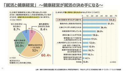 さらに就活生に行った調査では、健康経営に取り組んでいることが就職先の重要な決め手になると答えた人が60.4%にのぼりました。このように、健康経営は人材の採用においても大きな効果があると言えます。