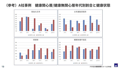 こうした結果から、企業の活性化を促すには、健康関心層を増やすという初歩的なアプローチも同時に意識していく必要があることがわかります。