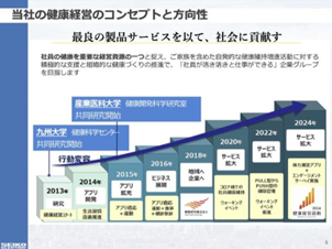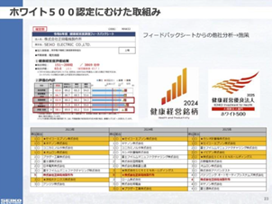 国の施策として健康経営が本格化した2013年に、当社も健康経営をスタートしました。2016年に健康経営優良法人認定制度が始まり、当社は2018年から継続して認定を受けております。さらに2024年には、健康経営優良法人(大規模法人部門)の上位500社「ホワイト500」の中から上場企業・業種別1社に絞る「健康経営銘柄」にも選定されました。