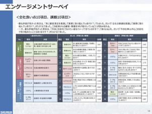 こうした健康経営の効果を測るため、エンゲージメントサーベイを実施しています。特に課題として捉えているのが従業員のモチベーションです。自社製品が社会に役立っているという誇りは高い一方で、自分自身がどうなりたいかという点は低いため、モチベーション向上をKPIに設定し、人事はもちろん、経営層の研修でもサーベイ結果をもとに各部門で施策を検討していただくようにしています。